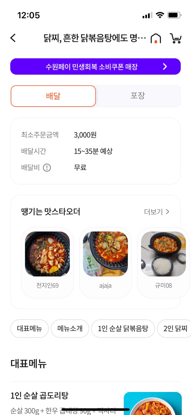 포인트 차감이 아니라 제 돈이 나가는 걸 보고 취소하고 다시 다른 배달어플에서 같은 매장에서 똑같이 주문한 뒤